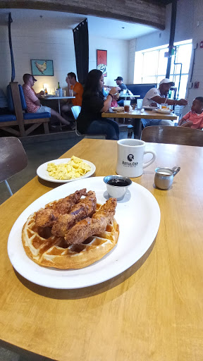 Overpriced and underwhelming . Took 2 hours out of my Saturday due to wait time and extremely slow food service . Chicken and waffles special sounded great, but the chicken wasnt flavorful and the waffle was so chewy I couldnt cut it with my butter knife. Basically had to tear it apart with my fingers. Bloody Mary had wayyy too much garlic, and this is coming from a garlic fan. I wanted to love this place, but I didnt. Next time I feel like spending so much on breakfast, Ill be going back to the Alabama biscuit company.