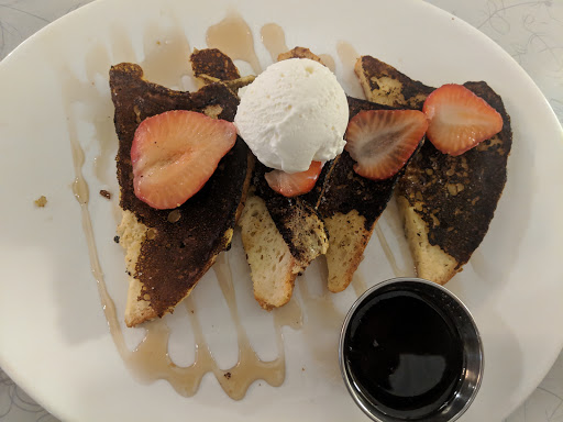 Alicia gave fantastic assistance and made us feel at home. Chicken and waffles (I chose dark meat) were awesome as was the egg skillet. The biscuits were served with thick cream butter (clotted cream) and fresh, world-class, French-style strawberry jam. The Octone coffee will get you on your game for sure! We were seated in 15 minutes outside and when it began to rain a bit we were immediately moved inside; the staff saw it coming and made room for us. Ill definitely bring my guests here for a taste of Birmingham. Thanks again!