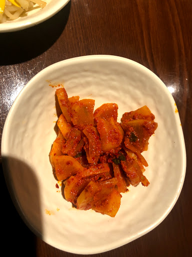 Didnt leave a one star review just in case my judgement was clouded because of all the other amazing Korean restaurants Ive had over the years. This place was a real disappointment. The lack of service was disturbing. My glass stayed empty nearly the entire time I was here. The side dishes were far too few and not very good. The salad was just dressing on lettuce. No bean sprouts. We needed more rice and the lady basically told us no. When she did bring some but not before counting our bowls which just seemed odd. Im sure I wont be back... or my wife, or the friends we brought, or anyone else that asks about this place. I did however like the Christmas lights on the trees inside...