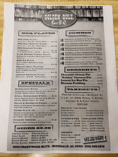 Golden Rule is a tradition in east Birmingham. The barbecue is tasty. Pie is homemade and very good.
