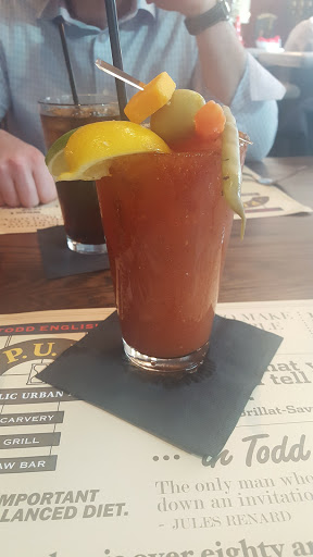 I went to Todd English P.U.B. on Tuesday 10/7. The bar was modestly busy, but with 5 or 6 open seats. The restaurant was about 30% full. It took 5 minutes or more to place a drink order, which was delivered promptly. After 5 more minutes trying to get attention, I was able to get a menu. The customer next to me desperately tried to get the bartenders attention for another beverage to no avail. After some time, I was able to accost a different bartender and place my order, and then finally get a drink for the customer next to me. The next 20 minutes were spent by 3 customers trying to get attention of the staff who repeatedly looked at the ground or away when near us. The staff was happily chatting with each other and with the young girls at the bar. We all joked the if we set something on fire one of the bartenders would have to come and put it out. my food came so overdone that I could barely cut it. And it was a hamburger! The bartender was kind enough to remove this from the check. However, I did not get another drink, and gave up trying and asked for check, as did my new friends at the bar. A comedy of errors. I returned for breakfast with a hotel voucher, and spent 15 minutes waiting for coffee before leaving. The manager offered to pay for my breakfast, (already had a voucher). This is the third and last time I will patronize this establishment. Good Luck! The Hotel generously gave me points for my inconvenience, but really, I just wanted to have a beer and a bite and go to bed. There is a systemic problem here, and they are fortunate that the hotel funnels customers in that havent been violated yet.