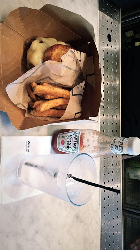 I eat out 5 nights a week, and I dont think Ive EVER given a place one star. And this isnt from one experience, Ive eaten here several times. This is connected to the Westin Hotel, which in my opinion is the ONLY reason its in business, b/c theres nothing else in walking distance yet. First, the food here is terrible. No really. Its a running joke with all my co-workers how bad the food is here. So much so, that it actually hurts the Hotels reputation. Soggy Fish and Chips, butter soaked lobster rolls, flavorless everything. This morning I ordered a Bagel with eggs and Bacon. How hard is that? It took 23 minutes to get it, and it also was soaked in butter. And I didnt ask for butter on it. The place actually has a great vib, and beer selection. its not bad if you want to grab a drink or watch the game. Just eat before you get here.