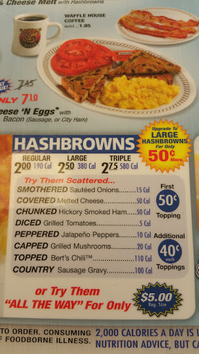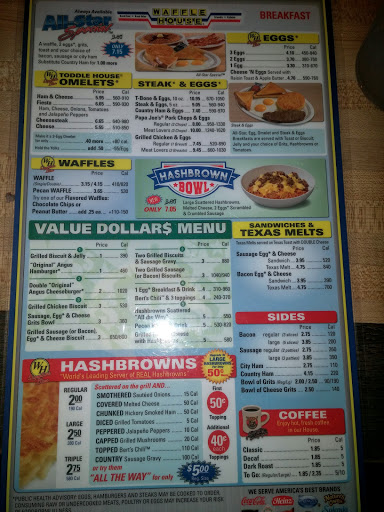Our waitress was more worried about talking about her partying this past Saturday night than waiting on us this Monday morning 5/1/2017. Thanks to Shelly, our unseen waitress. We dedicate this review. We will not be back to this Waffle House! Recommend going to another one, if you want a better experience.
