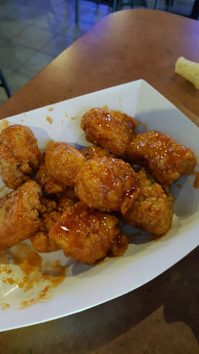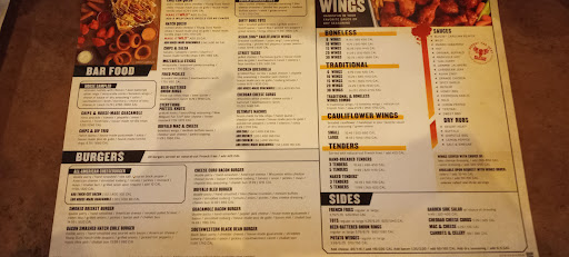 Chicken wings wasnt cooked enough, the skin was like rubber and the sauce was just splashed on some. Order fries with cheese (which isnt on the menu) but hey came out cold and the cheese so hard that we wasnt able to tear them apart. My mother seemed to enjoy her wrap of some kind. My daughter had the boneless wings and liked them. But for my sons and my wings HORRIBLE!!!!! Add slow service and a $65 tab with only tea,water and (2) soft drinks.......WILL NOT RETURN.... TERRIBLE!!!!