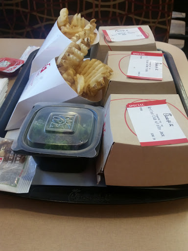 Honestly Im tired of going here and waiting FOREVER and Im tired on there not being any room to stand. Plus everyone there is so worried about getting food out that no one really cares about the customer overall this is not the Chick-fil-A I would take my family to.
