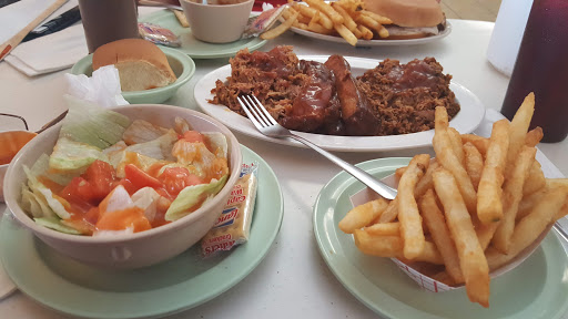 I would not recommend this bar b q to my worst enemy! The meat was dry and the sauce was flavorless. Our order was orignially to-go but we decided to stay so they charged us a dollar per person to sit in their hole of a restaurant. The rent on the place probably isnt even that much. The atmosphere was worst than a bad diner and the signs were about to fall down. You are better off going to the grocery store and buying some chicken and some bar b q sauce and save your money.....and I had to at least give it 1 star because it wouldnt let me give it none.