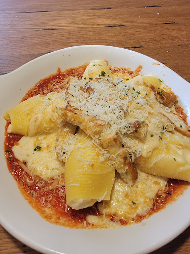 Yeah I know its a chain restaurant. The food was delicious. My first time ordering eggplant parmigiana - split an order with my wife and it was plenty and good. Wow! Ive got a new favorite! Salad was just right and although Im not a big fan of breadsticks, they were good too.The minestrone soup is wonderful with some of the grated cheese they offer along with a bit of fresh ground black pepper. Everyone there appeared to love what they were doing and made their guests feel appreciated. Good food and good service - combine that with fair prices and youve got the recipe for a place youll want to return to. 5 ⭐️ s