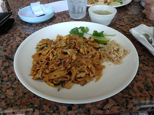 Pad Thai very tasty with quality moist chicken. Dumplings and sushi good as well. Some of the best service Ive ever had in a Thai restaurant. Restaurant is also nice and in good shape. We will come back when in town again.