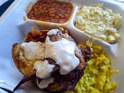 We buy BBQ plates every Monday for our employees here. Kevin always delivers on time/good hot food with a smile. Very happy customer.