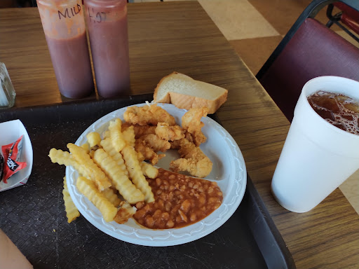 Delicious bbq, juicy chicken tenders, and there famous Jojos which are potatoes sliced in circles and not fried crispy but have a slight batter on them....AWESOME