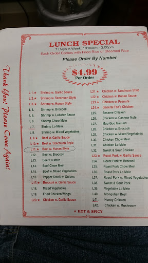 Good cooking and no MSG, makes this my favorite Chinese in town. Located next to the ABC state store leads to funny stories - they send large to-go orders in liquor boxes. Dining room is small but service isnt lacking.
