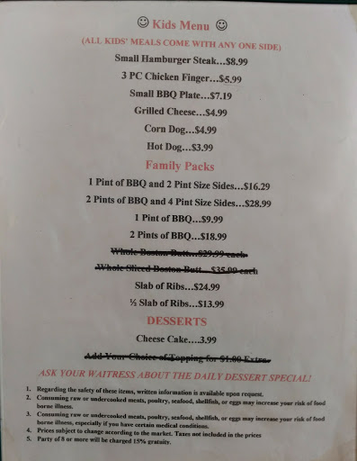 This place is a joke. Tried to order a bbq potato with no sauce. But you cant. All the bbq has sauce in it. The Philly steak my husband ordered was awful it tasted like it had taco seasoning in it. And not very much meat and no onions. When asked about butts which cost $30 the guy had no idea how much one weighed. Overall dont go here for bbq. If you want really good bbq come to "Mike and Eds BBQ" in Phenix City, Alabama