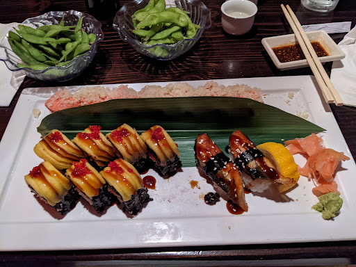 Great for sushi but go to Edos for authentic entrees. Their sushi selection has both variety and unique combos. I enjoy the Viagra roll, Nameko Jiru, and Ton Jiru soups. While the quality of the sushi is amazing, the entrees put me at a loss. The entrees arent bad- just be careful if youre expecting authenticity. Atmosphere is quite nice- red walls and black lacquered trim with soft lighting throughout. Service is good. The menu can be a tad pricey for the quantity but about average for the area.