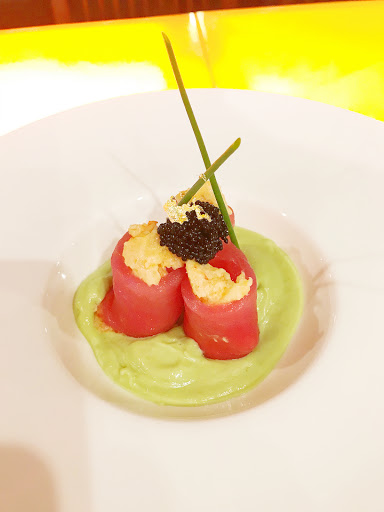 Great sushi place. The sushi tasted fresh and the interior of the place was clean and very sleek and professional. I sat at the sushi bar and the guys preparing the sushi were precise and professional. Could have had a larger selection of roll variety, but very good overall. Would visit again and take friends.