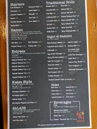 Kai is my go to date spot in Mobile. They have very yummy sushi for a great price and a friendly staff. There is almost never a long wait. Parties larger than 5 should call ahead for sure.