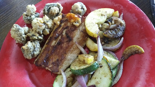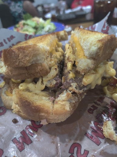 The wife had the GOBBLER they ran out of sweet potato fries so waiter told us about the other sids that she could have. Pick the side salad. The toasted sourdough bun was not toasted and tasted like it was wet and the bun tasted sweet? My Grilled Chicken Caesar was somethings that I would not come back for. Ask for the check and found out that we had to pay for the side salad? Ask the waiter about the charges and why we had to pay for it when they ran out of the sweet potatoes? He just said Cool, Cool, I ask again why and all that came out was Cool? Big tall guy that is trying to grow a beard (it looks bad). Was going to call over the manager but the wife dos not like to make a scene. Check this off my bucket list. Around the table could of been cleaned up. Every time that the side door opened-up the cigarets smock come in.
