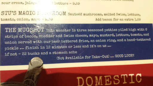wanted a burger but did not want to start my grill in the rain. Having read several reviews, I talked 2 friends into going to Mugshots with me. Our table ordered 2 burgers - Comeback and Seval (sp?) and a salad. The waitress did not ask us how we wanted the burgers cooked and we did not pay much attention to that at the time. The burger patties turned out to have an odd texture, on a lumpy side and both were cooked medium well. The patties had absolutely no flavor. If I closed my eyes and tried to eat it, I wouldnt have known what I was eating. It was other burger components that gave the burgers some flavor - the bacon was good and the bun itself and the seasoned butter on it were tasty. The Comeback sauce was mere ketchup and mayo mixed together and had very little in common with the original Comeback Sauce. Fries were alright. Our waitress was attentive and prompt. There were several items on the menu that looked interesting but after todays disappointment, we wont be back to try them. I would not recommend this restaurant.