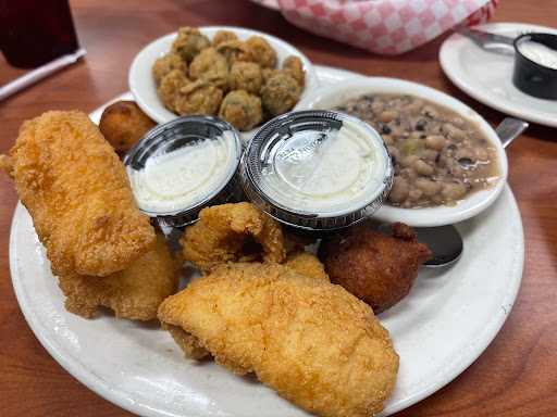 Went there for a date night and I ordered the Shrimp platter and he had the 2 choice seafood platter. We had the gumbo for an appetizer and we LOVED it. My husband said it was better than a majority of restaurants he has had gumbo at. Then our orders came, very quickly and very hot, the food was wonderful. My husband had the cabbage with his meal and had a heavenly experience with it. He bragged on that cabbage to all the servers that came to check on us. Now I do advise that you really dont need to go large on any of the platters, unless you intend to share with others at your table or home if you go through the drive through or do takeout, cause the regular size platters are VERY filling with enough left over to bring home. I also found it to be a very affordable place to eat. Go enjoy!!!