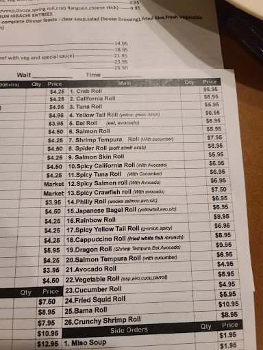 YOU PAY THE SAME AS MIKATOS (OFF AZALEA) AND KONNITIWA (COTTAGE HILL RD.). And Mikatos and Konnitiwa have MUCH better quality rolls, and include actually vegetables and good seafood in your roll. Shogun uses too much mayo and rice, and their crawfish rolls, almost look like imitation crab meat. My first time there, I called my order in an hour early, the drive thru lady actually reprimanded me by telling me to "call my order in ATLEAST 20 minutes early next time." I had to inform her that Id called it in atleast an hour ago. She rolled her eyes and shut the window to see if my food was ready yet. -My sister used to reeeally liked this place, but informed me NEVER to actually watch them make the food, her last time there.. she watched the chef drop a roll on the floor, bend down on their hands and knees and look under the counter for it, then pick it up and put it on the plate. EWWWWW !! NOT CLEAN !! Konnitiwa has strange hours, but is totally worth it. Call for their hours. Mikatos has poor service, but awesome rolls, fantastic quality and good filling within the roll. Liquid Lounge on Dauphin St. is much more americanized (some rolls include beans), but have good rolls. Samurai J, Ive heard has poor service now, when I used to go a few years ago, their food was pretty good. GOOD LUCK !!