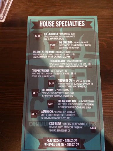Great local coffee shop starting out. Totally worth supporting! They focus on coffee but hopefully with community support they grow into a serious contender as there arent many places local to enjoy coffee, study, talk, etc....