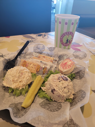 Great selection of delicious chicken salad. The broccoli salad with bacon and cheddar cheese is to die for. The lunch combo is s nice value that includes chicken salad on a sandwich or scoop with the fresh delicious cookie of the day, a pickle and one or two sides of your choice. Drive through ordering is easy to use. Wish they had these in the north in NY.