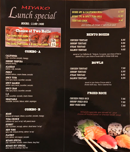Been looking for a Japanese restaurant to replace shogun for me as Shogun just isnt what it used to be. Did not like kabuki but Miyakos was EXCELLENT. The food was delicious and presented well. The interior is nice, light, and clean. Service was good. Ill be going to Miyako now as my Japanese restaurant of choice in the Montgomery Area.