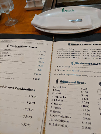 Excellent miso soup. I ordered Hibachi Filet and Chicken and my wife ordered Hibachi Shrimp and we both enjoyed every bite of it. They do not give a military discount.