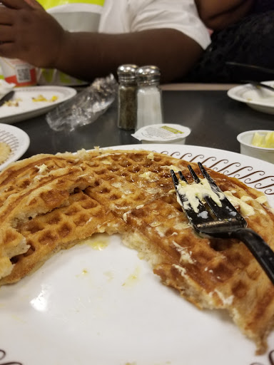 Of all of the Waffle Houses Ive been, this was the worst. It took 10 minutes just to get a coffee. The waitress was nice enough, but all of the staff that were there acted like it was a chore to be there. When the manager came in towards the end of our meal, he was all over the staff for no name tags and other things.. The food we got had to be sent back twice for being incorrect. While I do enjoy the Waffle House brand, I went to their competitor the next morning, in which the staff were grateful we were there, attentive, and happily served us.
