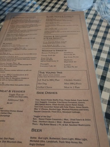 Bluegrass Barbeque has great food with a fun, unique atmosphere. The barbeque is good but the southern comfort foods are just as wonderful. Every time we eat here, I try something different and have yet to have something that wasnt great! If you like chicken and dumplings, then I highly recommend theirs. They are probably the best I have ever had!!!