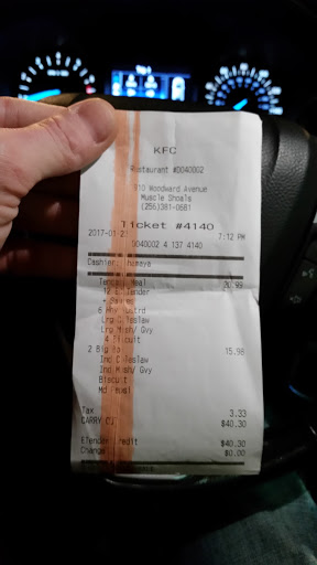 Having lived in Louisville, Kentucky (the central headquarters of KFC/Yum! Brands) for seven years, I learned a few things about KFC: Namely, their product quality and overall restaurant concept has gone down...down....down. That said, because of their restaurants consistently poor standards of quality, I’ve stayed away from KFC for a long, long time. Recently, though, I decided give their outlets here in the Shoals another try, mainly because the new ad campaign for "Original Recipe" chicken strips sounded pretty good—if only in theory. Of the first three trips to different Shoals-area KFC locations that Ive made in the last few weeks, Ive found the Original Recipe chicken "strips" (or "tenders," as most people call them) to be sufficiently decent. Not overly great, but pretty good. Tonight, however, when I arrived back home with my just-ordered 6-piece strips, I opened the box and found a garbled assortment of chicken that looked as if itd been prepared with a ball-peen hammer. Indeed, the strips were misshapen, tangled together, overly-breaded, and ice-cold. Not very appetizing. Additionally, the large order of potato wedges I received was similarly unappetizing and cold: an incomprehensible mix of potato parts resembling the scrapings left over from the end of the night. (Just for the record, I placed my carry-out order during regular “dinner” hours [6:15 p.m. or so], so this wasnt a late-night drive-thru scramble) I picked around in the boxes, selecting what looked most edible, and hastily threw the rest of the mess into our jumbo-sized trash can. Then, having just left the restaurant (and living about 7 blocks away), I placed a call to the location in hopes of getting someone to acknowledge the poor condition of the food. No dice. Just an impersonal, taped message on an answering machine. If anything happens, Ill letcha know. But it looks like me and KFC are parting ways once again. Im sorry corporate America and its culture of apathy ruined your chicken, Colonel.