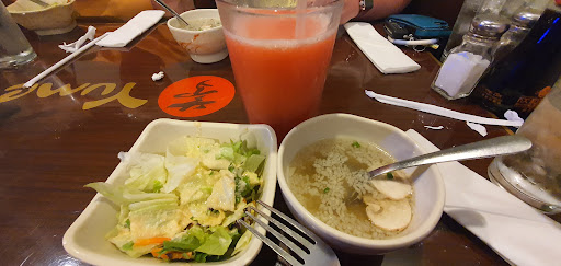 This was my first time here. I am comparing this to my favorite Japanese steak house, Kani House. Our server was good 9/10 for her she was slow on drinks. Great on everything else. Our chef was nice and somewhat entertaining. I think he should have been WAY more interactive because there were children at the table. I wouldnt say the food was the best I have ever had but it was good. They only offer ginger dressing for the salad. Which is fine with me, but other options would have been nice for the kids. We were seated quickly and we got a good amount of food for the price point. Overall it was good, but I wouldnt go out of my way to go back. :)