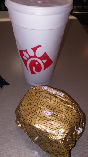 In the mornings, as Im on the way to school; I swing by Chik-fil-a and get either a chicken burrito or a sausage burrito. I know that the food is usually pretty great and tasty. I also get coffee from there, I like good coffee and sometimes I really enjoy their iced coffees
