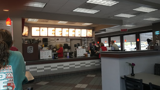 Its Chick-Fil-A so you know the food is great and that goes true with this location as well. However, this was one of the dirtier locations Ive visited. The restrooms were dirty and cluttered with towels. The tables in the restaurant needed cleaning badly. We were on our way back to Nashville from Gulf Shores and arrived there at 2:30pm, they were busy, but they werent so busy that someone couldve wiped down tables and given the restrooms some attention.