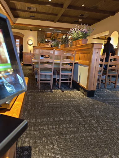 The place smells bad ( I think its the carpet). The food was not good ( barely any dressing on the salad and server never bought dressing even though we asked twice, calamari was wet from mushrooms, chicken was dry and sauce scarce and slightly scorched, shrimp overcooked, bread sticks were not fresh), which was surprising considering its a chain. Brightside...Hostesses were very nice.