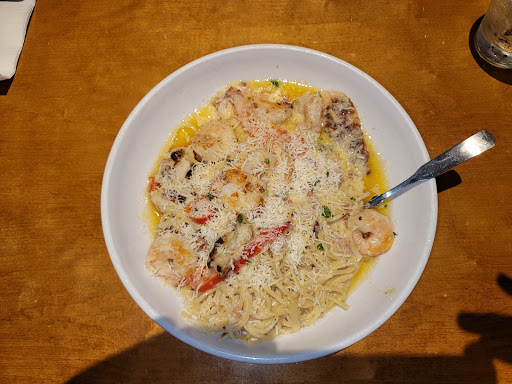 Love ! LOVE ! This Olive Garden ! Much better then the Montgomery location. It is located in the right place, where you can take a stroll through the shops surrounding this OIive Garden. Now, about the food. Very delicious. Watch out for some of the foods, some are spicy, but only very few menu items are. Here is some advice : When you are roaming your eyes through the menu, look for special symbol icons that will tell you if something is spicy or not. Do not be afraid to ask the wait staff or management questions. They are very professional and are quick and fast paced when doing their jobs ! I definitely will be back to this place !