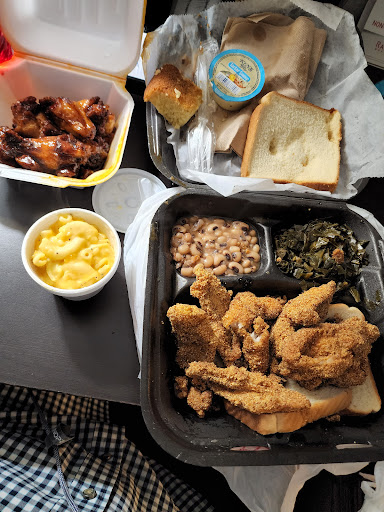 They have the best wings Ive tasted in my life. I also love their banana pudding. The only thing I dont like is the sides come in small serving cups. I overlook that though because the food is so good. They are always very friendly to everyone as well!