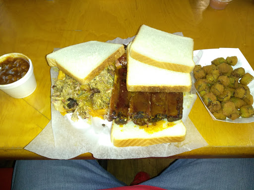 Stopped in on the way up from New Orleans to Louisville.....and this is by far the best BBQ joint Ive ever been to and Ive been to a LOT in my time. Absolutely delicious fall off the bone ribs, pork and chicken was outta sight! All the sides were absolutely scrumptious! Fried green tomatoes best Ive had! Sauce is wonderful but why mess with the meat? Just eat as is!