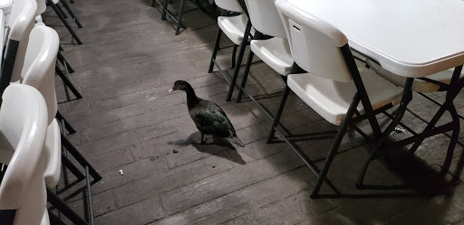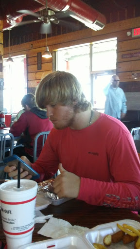 In an effort to try a new restaurant (I work in and around the Birmingham/Tuscaloosa area, driving and eating out a lot), I tried this one, hoping for freshly made items. I opted for the "cheddar style" cheeseburger (bacon, grilled onions, & cheddar), fries, and chili. The fries were obviously from a bag, with no seasoning. The chili was obviously from a can--just ground beef, very little sauce, no beans--basically hot dog chili. The burger was handmade, but did not have much flavor. A good amount of cheese on what appeared to be store-bought, bagged buns. Although the staff was not rude, they also just seemed like exactly what they probably were--minimum-wage fast food workers who really didnt care much about quality of service. The area between the drink machine and hall to the restrooms had a really bad smell. There were ducks outside on the patio eating table scraps, which was charming upon my entrance, but as I left, I noticed they had left several large piles of excrement around the eating tables! The outside tables and chairs are standard folding-style that anyone could go and pick up at a place that sells those kinds of things. The price seemed reasonable for four items – I also had a sweet tea, and the portion of chili was miniscule. My total was somewhere between six and seven dollars. Overall, disappointing. Will not be back.