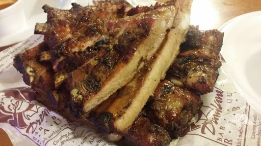 Delicious ribs! Im not usually a fan of ribs, but their ribs were lean and cooked perfectly. Also, even though its a chain restaurant, its got a certain ambience Ive never seen anywhere else that makes this restaurant feel like a truly unique dining experience. I would definitely recommend any meat lovers try this Bar-B-Q restaurant! Vegans or vegetarians should probably take a pass though...
