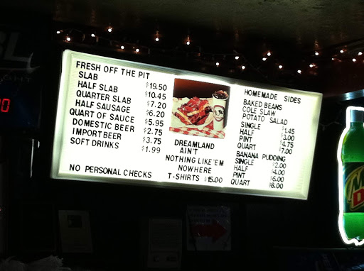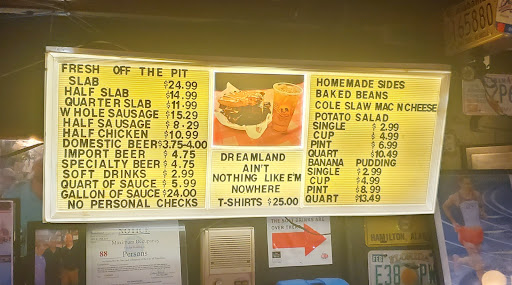 Pretty cool place in Tuscaloosa. Alot of great crimson tide history and cool atmosphere. Menu was extremely limited and I enjoyed it, however I do think the actual food was overrated compared to what everyone has to say about it. I think that if dreamland had a wider selection of what kind of bbq meal that you could order, with a few different sauce options I think that it would be better rather than just a the 1 and only entree choice, and the one and only house bbq mustard and vinegar based sauce. There are a handful of sides but needs more variety.