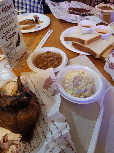 Great food in a cramped, memorabilia-filled building. Basic fare: ribs, sausage, potato salad, beans, cole slaw, banana pudding. Sauce a bit thinner and a bit spicier than most others. Dont let driving past a landfill and a youth correctional facility turn you off.