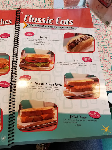 We had a fantastic time at Hwy 55 tonight celebrating a birthday! Our PawPaw loves all things 50s. He even drove his 55 Chevy to dinner. We had fried pickles, chili cheese fries, gravy fries, burgers, cheese steaks, and a whole lot of frozen custard. Everything was great! They got really busy about 10 minutes after we got there and the staff was unfazed, polite, timely, and graceful as they worked through the dinner rush. The staff made sure we had everything we needed even though we were worried we might overstay our welcome (there were nine of us there for close to 3 hours). We will definitely be back! Thank you so much to the awesome folks at Hwy 55 who even put up with us singing loudly along with the 50s music after the dinner rush!