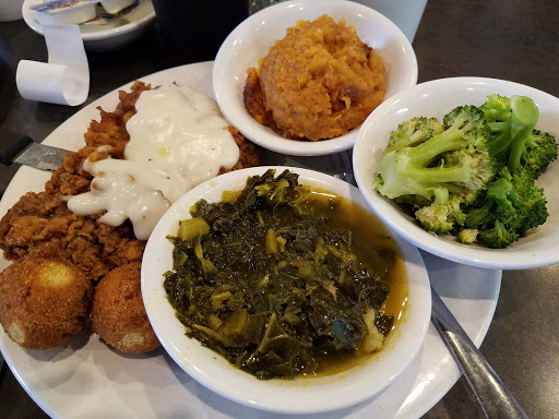 Ive had mixed experiences here, some good some not as great. First the price is high for a meat and 3 type place, and quality depends on what you order. Catfish was disappointing, but the sides are usually great. My recommendations are black eyed peas (very flavorful), broccoli casserole, and green bean casserole. Dessert wasnt worth the high price in my opinion (almost $4 for one slice..) the cake was dry. I do wish that they would put vegetarian markings on their menu so those who are vegetarian know what they can order easier. But overall, the sides are what I go here for, they are really good!