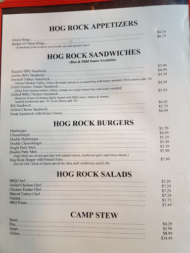 hog rock used to have really good smoked butt .got one to go today for my parents sad to say if I wanted a butt cooked in the oven and reheated I would have done it myself . meat had 2" of fat on it and was soo greasy almost could not eat it .baked potatoes were brown from setting all day