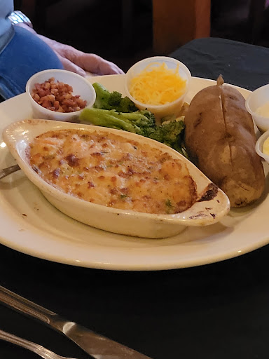 We just moved to the area and based on the reviews, thought wed give it a try. The food was pricey, but ok (what was edible), but the service was horrible. Our waitress brought our food and left, not to return until our meal was over. We attempted to flag down the other waitress without luck. I ordered my steak medium well and it came medium rare at best. The potato was not even warm (wouldnt melt the butter) when it came to the table. The Scampi was ok, but rice was bland. I have to say the best part of the meal was the side salad for 73.00.