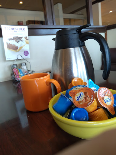 Been here a few times. No longer happy with Village Inn. First of all, breakfast. It used to be that you could get a couple of eggs, toast, bacon, and maybe hashbrowns for about 4 bucks. Now, in an effort to increase their bottom line, the special is "Any Four Breakfast Items for $6.99." Didnt know that when I told the waitress that I wanted eggs, toast, etc., and felt totally ripped off with the bill. Its just eggs!!! Second, last lent, we were at VI on a Friday, I ordered the fish dinner, what I got were three greasy little fish triangles, overcooked and hard. Yuck. Ok, so, now, half a year later, Im at VI with my family, and I ask the very nice waitress about the fish, and if theyre the same quality of fish, and she says they are flaky and tasty cod filets. NOPE, greasy overcooked fish triangles. And the french fries are covered with pepper. Yuk. My husbands and brother-in-laws double cheeseburgers were horrible. In an effort to save money, the all beef hamburgers are no longer ALL BEEF. They are the kind of hamburgers where you fill a bowl of beef up with onions, bread crumbs, green peppers, eggs, etc., and make some type of burger that takes crunchy and weird. Both guys were full and didnt finish their meals. And lastly, the very nice waitress asked us at least two dozen times if we wanted pie, to save room for pie, if we wanted to take pie home, to come back for free pie day, why we didnt want pie. Annoying. I will never eat at Village Inn ever again.