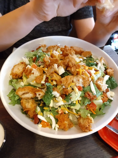 Always friendly and fast food good quality Love The Whiskey River salad and Whiskey River wrap and my fiance loves the Berger not to mention you get free Burger on your birthday which is of course what we did since our birthdays are in July. But excellent food great staff nice environment and of course good for the price definitely check this place out!!! PS the garlic fries are awesome just go light on the oil cuz they get bit oily.