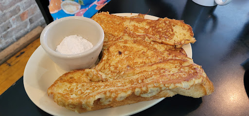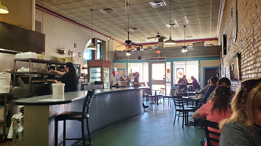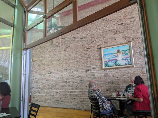 This place is a fantastic stop coming into the town of Bisbee! Not only is in a very cool historical building with a lot of the orginal ornamental features including the brick wall facade (and if you are a fan of antique tin ceilings like me, you will be impressed!). My mom and I had become regulars on my visits to see her at their location in Tucson, so we were just tickled when we came upon this place and found it was the "original". They serve bfast all day (until 3pm when they close) and it was great to sit up at the counter for counter service. Our waitress was the best! After putting in our orders we chatted w/her like we were long lost friends (the place was pretty empty when came in right before closing on a weekday). My mom went for a bfast option, but I had to try the reuben. It was just OK, so I think I will stick w/the bfast options. Our waitress was so sweet and gifted us a piece of their coconut cream pie. Not only was the piece HUGE, but it was DELICIOUS! Highly recommend and worth a stop in for the pie alone.