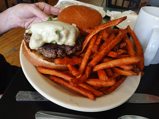 Just to be different, I had lunch instead of breakfast Friday. The Gooey Looey burger is insanely good, and compares with any burger Ive had anywhere, a perfectly balanced mix of many flavors. The sweet potato fries are the best Ive ever had, crunchy and not at all greasy. The potato pancakes are the best Ive had in any restaurant (only available Saturday). The pancakes and French toast are spectacular. The cream pies are my go to "Ill bring dessert" dish. Service can be slow, especially on weekends when the snowbirds are in town, but thats because they are so popular and busy. Theyre worth the wait.