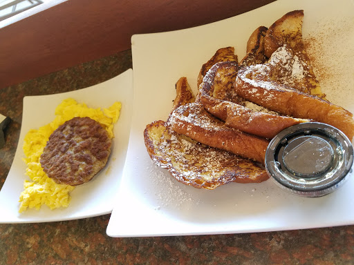 LOVE this place!!! One of the best breakfast/lunch places my family has ever been to! Its clean and everyone is extremely nice and attentive. My favorites are the Mediterranean Omelet and the French Toast Platter. My kids favorites are the Bagel Sandwiches (comes with breakfast potatoes or fresh fruit) and the Waffles! Found out all their sandwich breads and pastries are baked there daily and they have one of the BEST Chocolate Chip Cookies youll ever try! They definitely deserve a 5 STAR rating!!